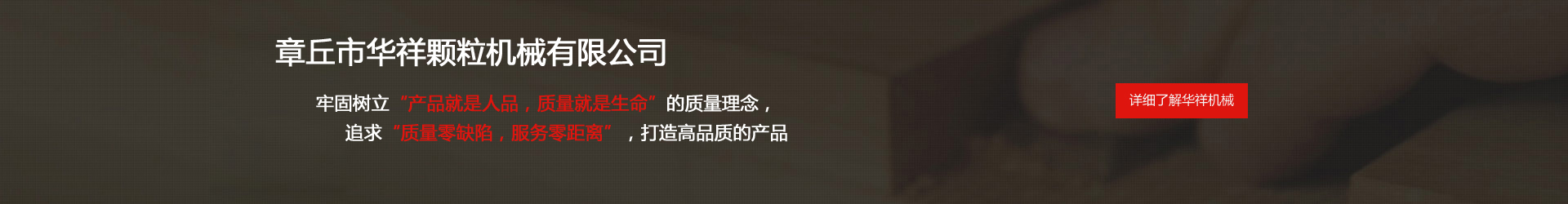公司成立于1997年,前身為章丘市華祥機械廠(主營:顆粒機,飼料顆粒機,有機肥造粒機,有機肥設(shè)備,木屑顆粒機,顆粒生產(chǎn)線等), 公司是集機械制造,成套設(shè)備設(shè)計,安裝于一體的現(xiàn)代企業(yè),由鑄造、機械加工、合成組裝、設(shè)計開發(fā)、網(wǎng)絡(luò)營銷五個聯(lián)合單位構(gòu)成。主要生產(chǎn)飼料加工機械,生物質(zhì)燃料機械,有機肥生產(chǎn)設(shè)備三大系列產(chǎn)品。 華祥機械牢固樹立“產(chǎn)品就是人品,質(zhì)量就是生命”的質(zhì)量理念,追求“質(zhì)量零缺陷,服務(wù)零距離”,打造高品質(zhì)的產(chǎn)品。 精心的設(shè)計、精湛的制造、精細(xì)的施工、全方位的服務(wù),以及華祥人長期秉持“讓我們共同前進(jìn)”的理念,使華祥贏得了良好的社會信譽,產(chǎn)品遠(yuǎn)銷意大利、越南、緬甸、澳大利亞等全球多個國家和地區(qū),產(chǎn)品質(zhì)量和信譽得到了廣大用戶的認(rèn)可。 未來,華祥人將繼續(xù)大力發(fā)揚"誠信、創(chuàng)新、協(xié)作、效率"的企業(yè)精神,堅持技術(shù)、產(chǎn)品、管理、服務(wù)創(chuàng)新,大力推進(jìn)產(chǎn)品精品化和市場國際化,全力打造“華祥”機械品牌形象。想客戶所想,為客戶創(chuàng)造價值,協(xié)助客戶的事業(yè)獲得成功;"華祥"人充滿信心,滿懷希望,真誠期待與您共贏。